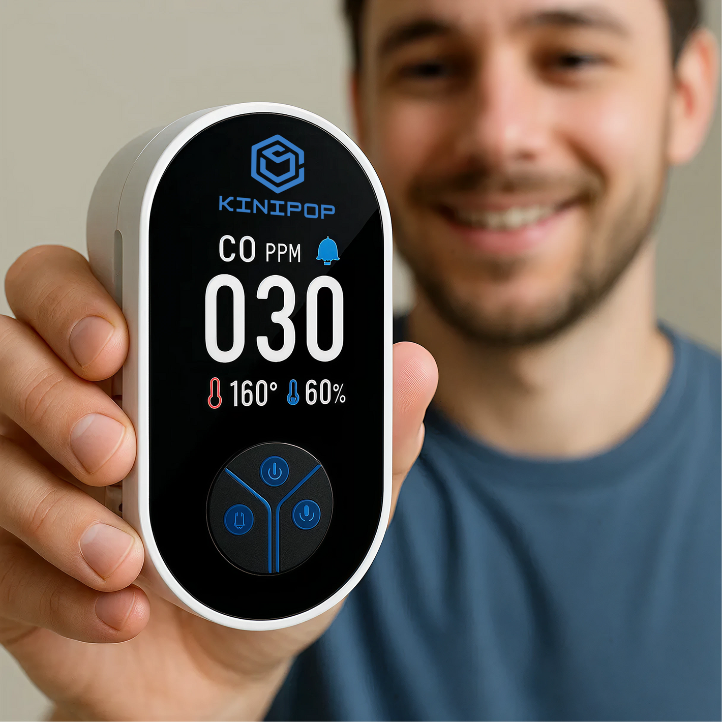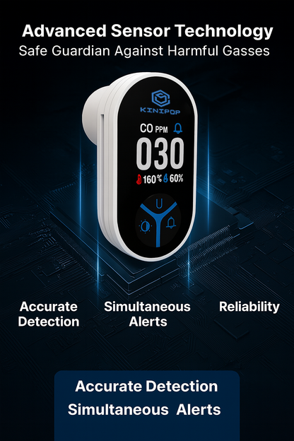 ✓ Triple environmental monitoring – CO, temperature, and humidity